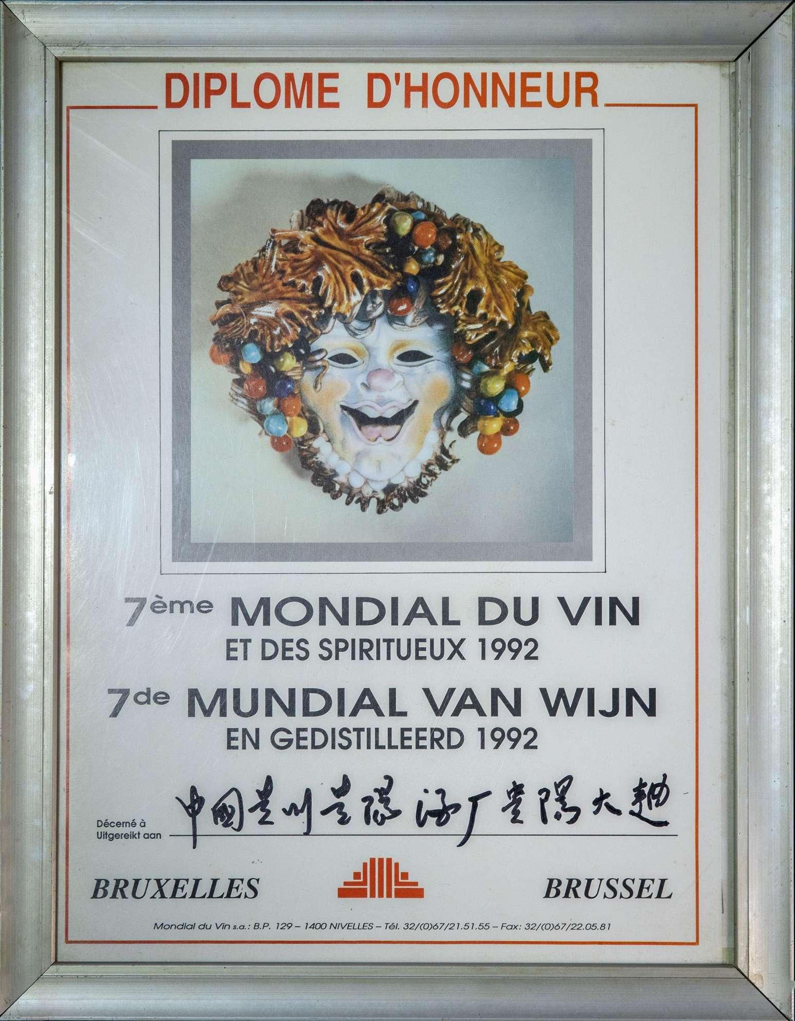 贵阳大曲——1992年比利时布鲁赛尔国际酒类博览会“银爵奖”