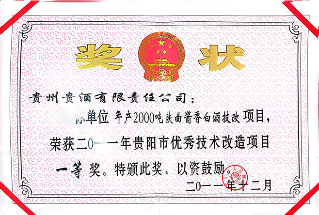2011年贵阳市优秀技术改造项目一等奖