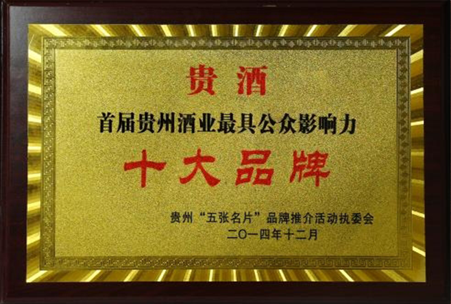 2014年首届贵州酒业最具公众影响力十大品牌